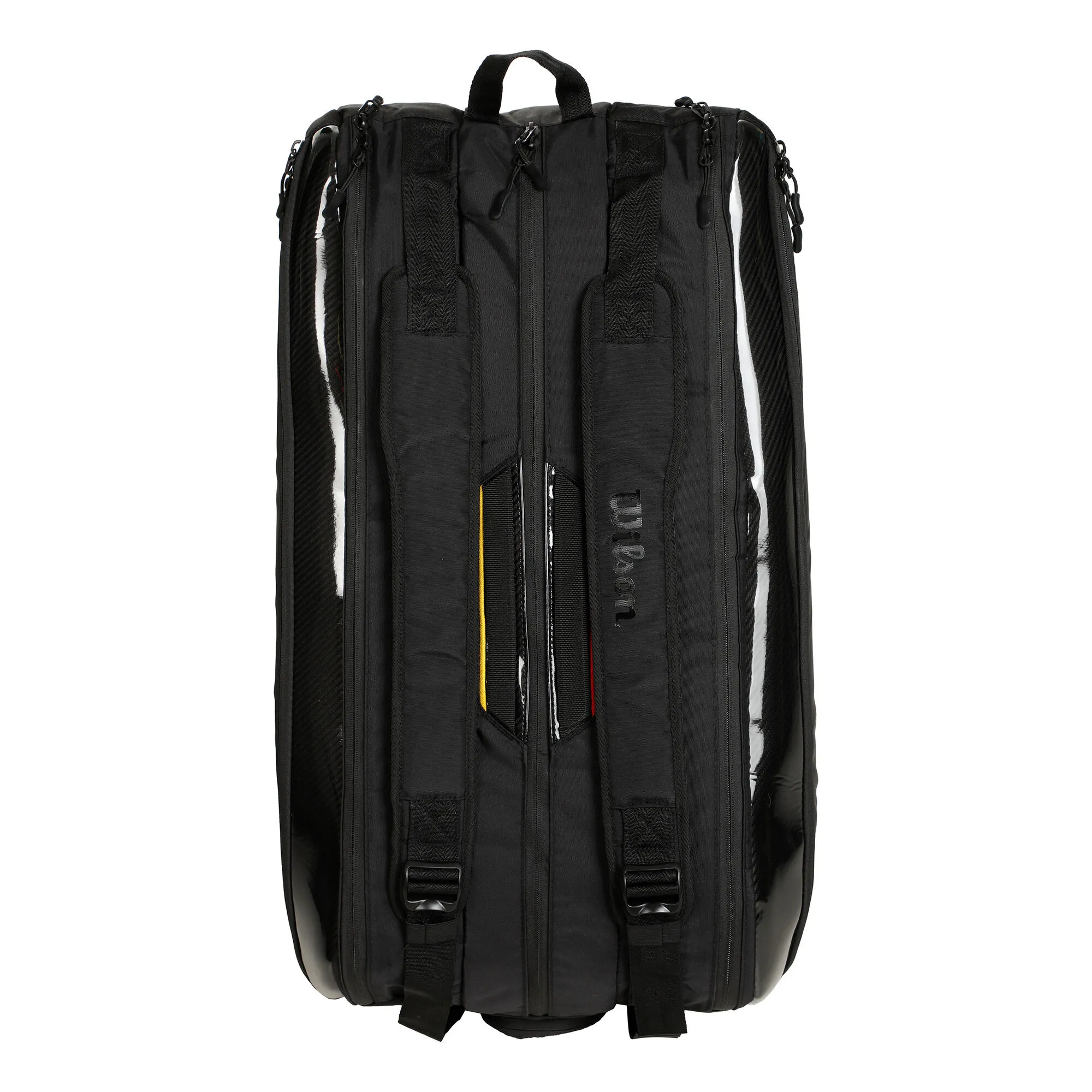 Borsa molto resistente rivestita esternamente che permette di proteggere il contenuto da urti. Due scompartimento laterali ThermoGuard dove posizionarci le racchette e panni per proteggerli dall’umidità, calore e sbalzi di temperatura. Ulteriore scompartimento interno e due tasche esterne permettono di archiviare gli accessori.